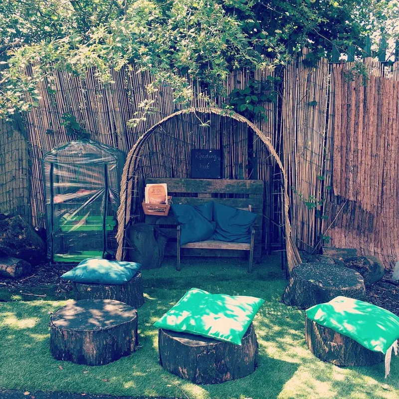 All of our outdoor continuous provision mirrors our indoor provision and is designed with a natural theme. We currently have an active outdoor maths area, writing area, construction area, small world, outdoor kitchen, reading den, nature area, bug and bee hotel, water and sand play. Children have access to a wide range of challenges that build on their natural curiosity for learning and the world around them.