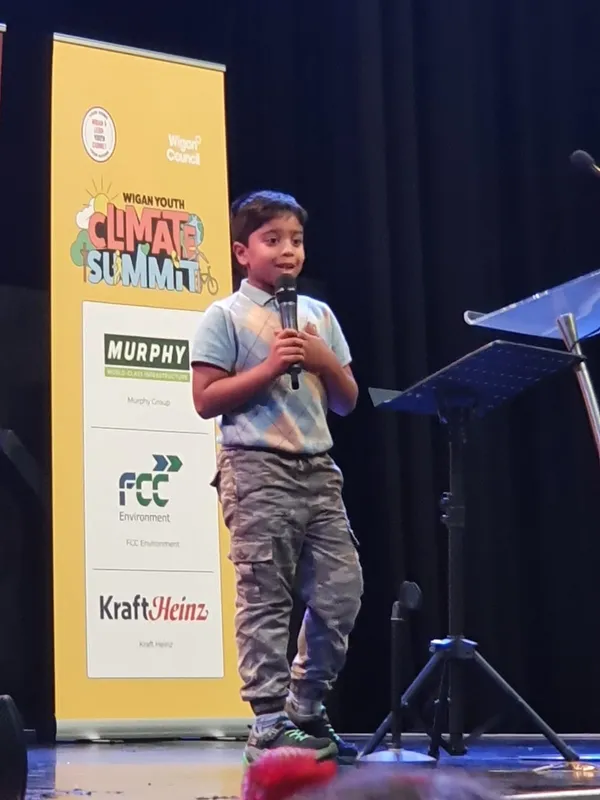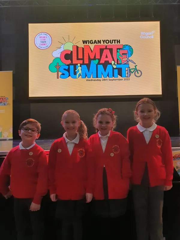 Some of our Eco-Committee members took part in the Wigan Youth Climate Summit today where they shared ideas about improving our impact on the environment. They even got to listen to a talk from Aneeshwar Kunchala from Britain's Got Talent. He spoke to the children about different projects to help save our planet.