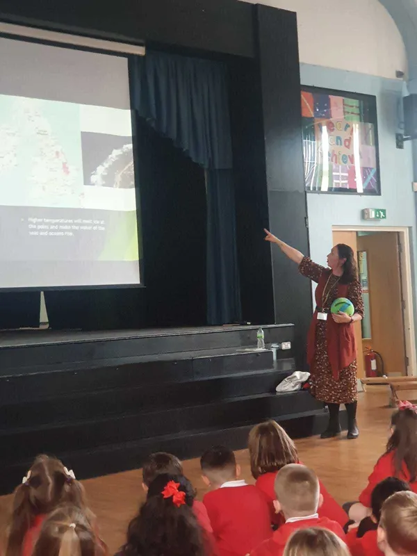 Our junior children enjoyed an informative assembly from Ellen at Wigan Council's Climate Change Team today. She talked to the children about global warming and how we could all do just one thing to make a difference. We all agreed to try to remember to turn off the lights when we leave a room, or even try to walk to school a bit more.