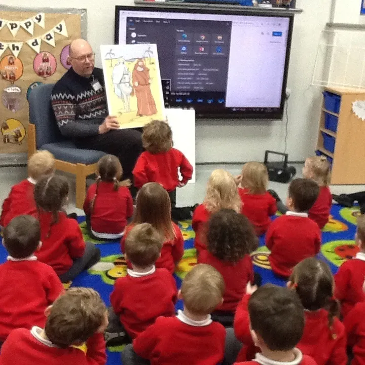 Our Nursery children enjoyed a special visit from Reverend Cox today and learnt about The Nativity Story. He talked to the children about this important event in the Christian Calendar, shared picture books and spoke to them about the Christmas period.