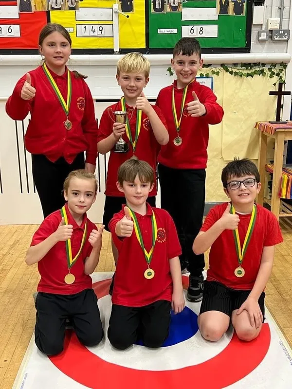 Congratulations to our Kurling team who won the ATSA Kurling competition today. The team showed great determination and team spirit throughout and showed great encouragement to the other teams too. Well done children!